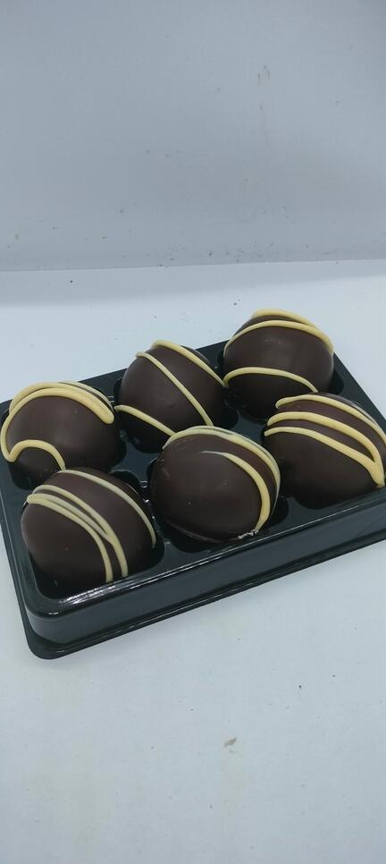 Æske med 6 stk karamel skildpadde romkugler.